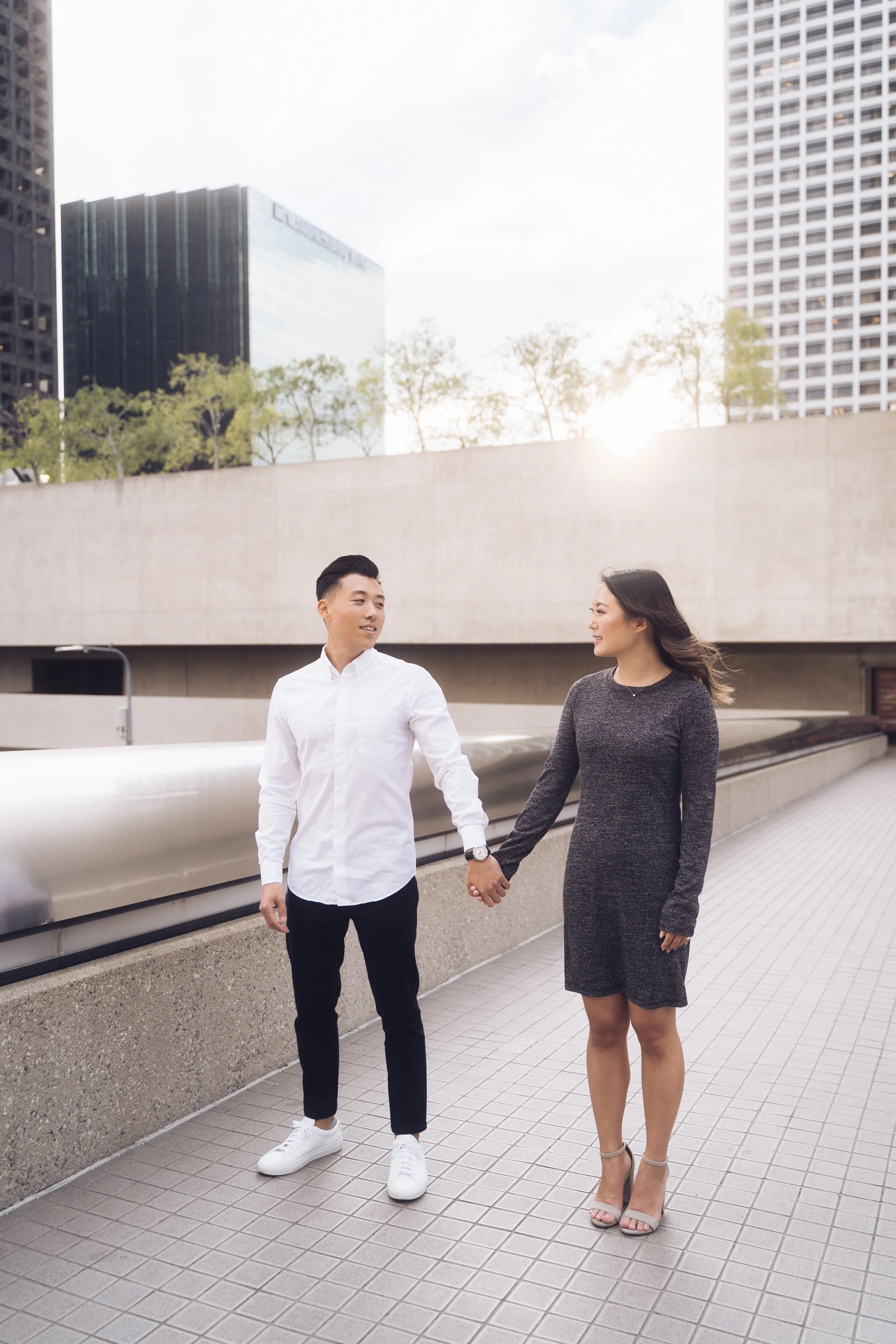 Movement helps loosen up your body and get comfortable in front of the camera. Whether slow dancing or jumping around. Smiles and laughs are bound to happen. Which leads to an authentic and “in the moment” engagement photo. It’s always fun to start with a slow dance and then add some spins and dips.